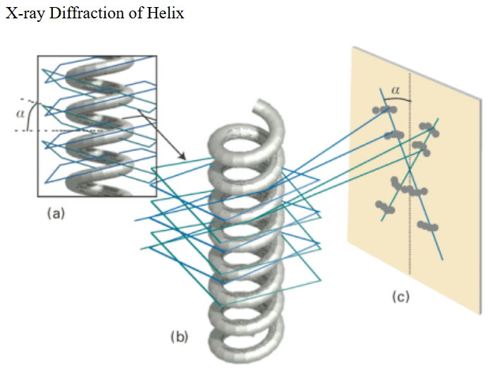 電磁波與電子的交互作,用通常只改變傳播方向與相位,不改變頻率。(想像、吸收一下) Kinetic Theory vs Dynamical theory (of Diffraction) 不盡完美,也能提供資訊。 照片51號,與螺旋的關係。