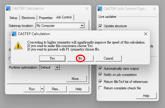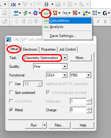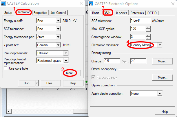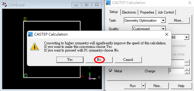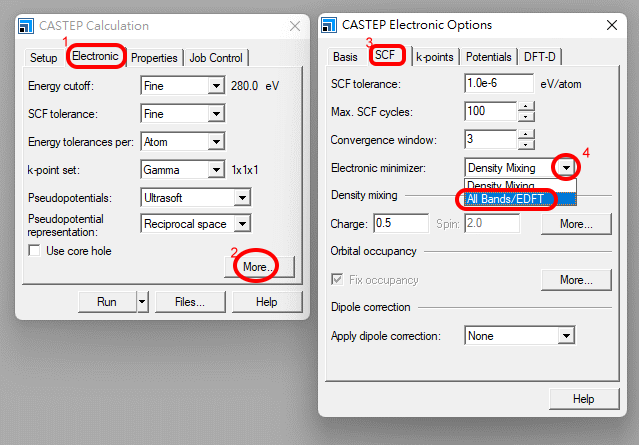 ¦b Electronic -> More ¤¤ªº Electronic minimizer ¨Ï¥Î All Bands / EDFT¡A·|Åý C2 pºâ§óéw¶¶§Q